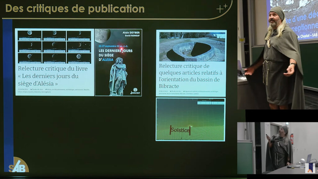 La parution de la relecture critique de notre ouvrage, Les Derniers Jours du Siège d’Alésia : 22-27 septembre 52 av. J.-C. (Lemme Edit, 2019), par Messieurs Éric CHARIOT, Vincent BOUDON, Vincent GUICHARD et leurs membres collaborateurs de l’association d’astronomie d’amateurs (SAB – Société Astronomique de Bourgogne) sur la plateforme HAL ( https://hal.science/UNIV-BM/hal-04064035v1 ), nous offre l’opportunité d’un débat que nous jugeons nécessaire.